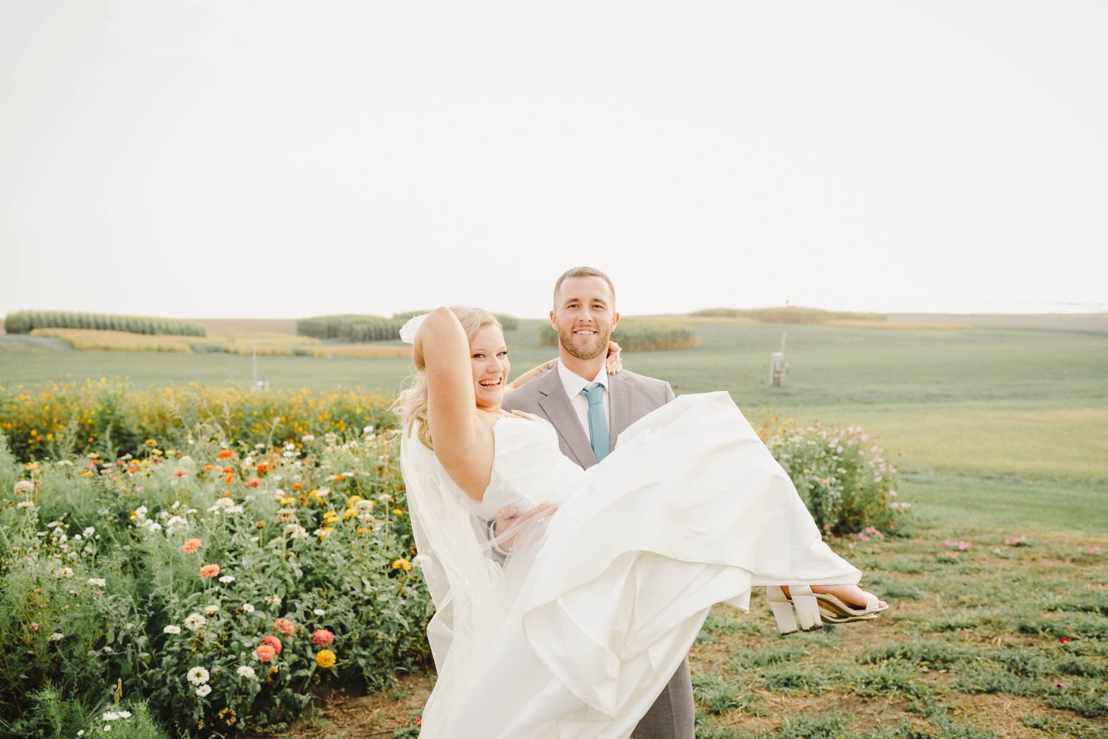Groom carrying bride