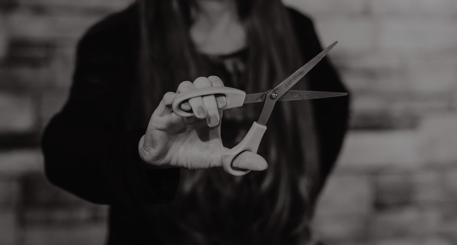 Branding portrait of a women holding scissors