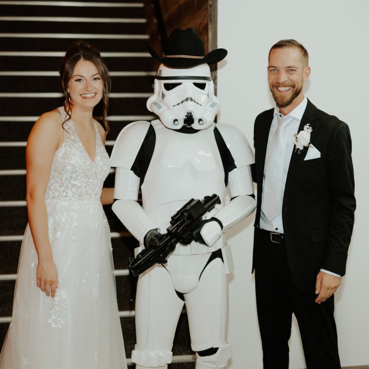 Wedding couple with Starwars stormtrooper