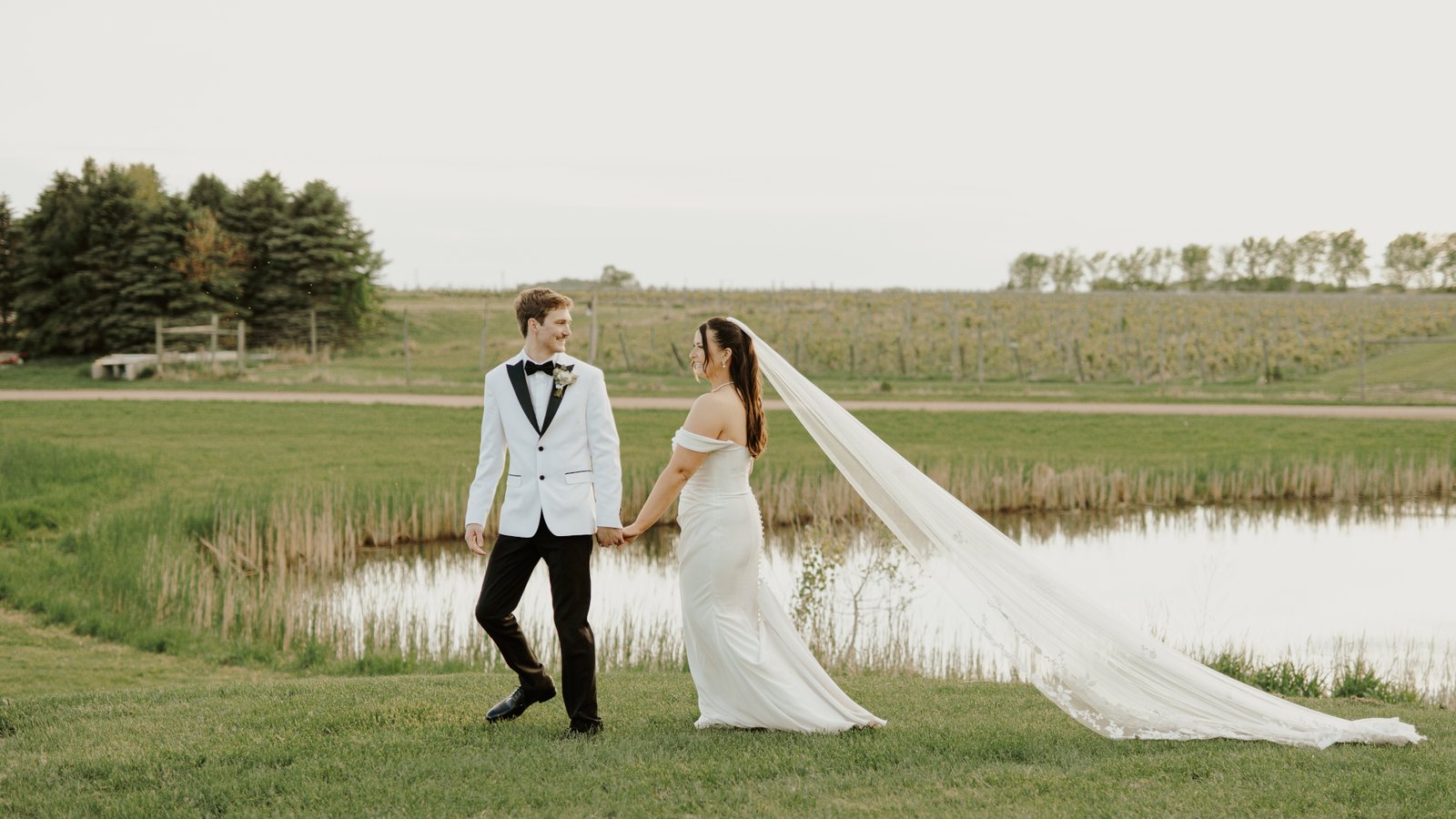 Wedding couple walking together