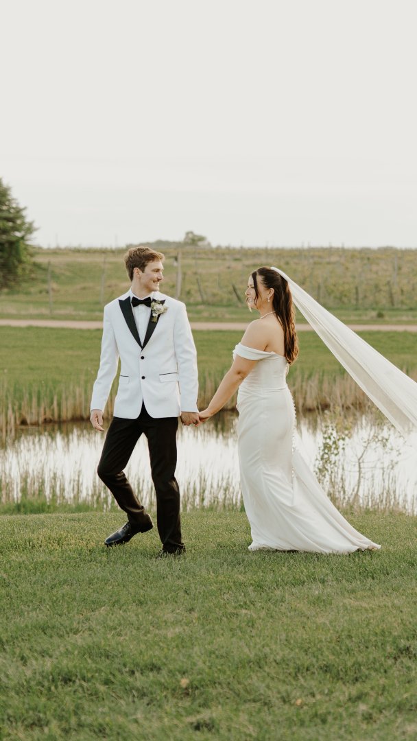 Wedding couple walking together
